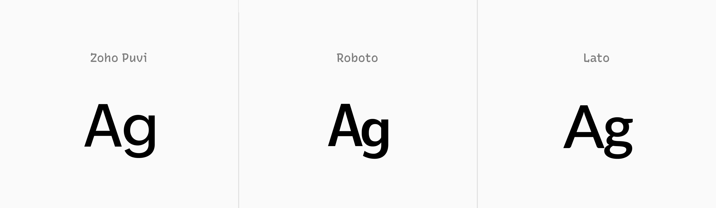 Zoho Desk supports three typefaces: Zoho Puvi, Roboto, and Lato. While Zoho Puvi is the default selection, users have the flexibility to choose their preferred font.